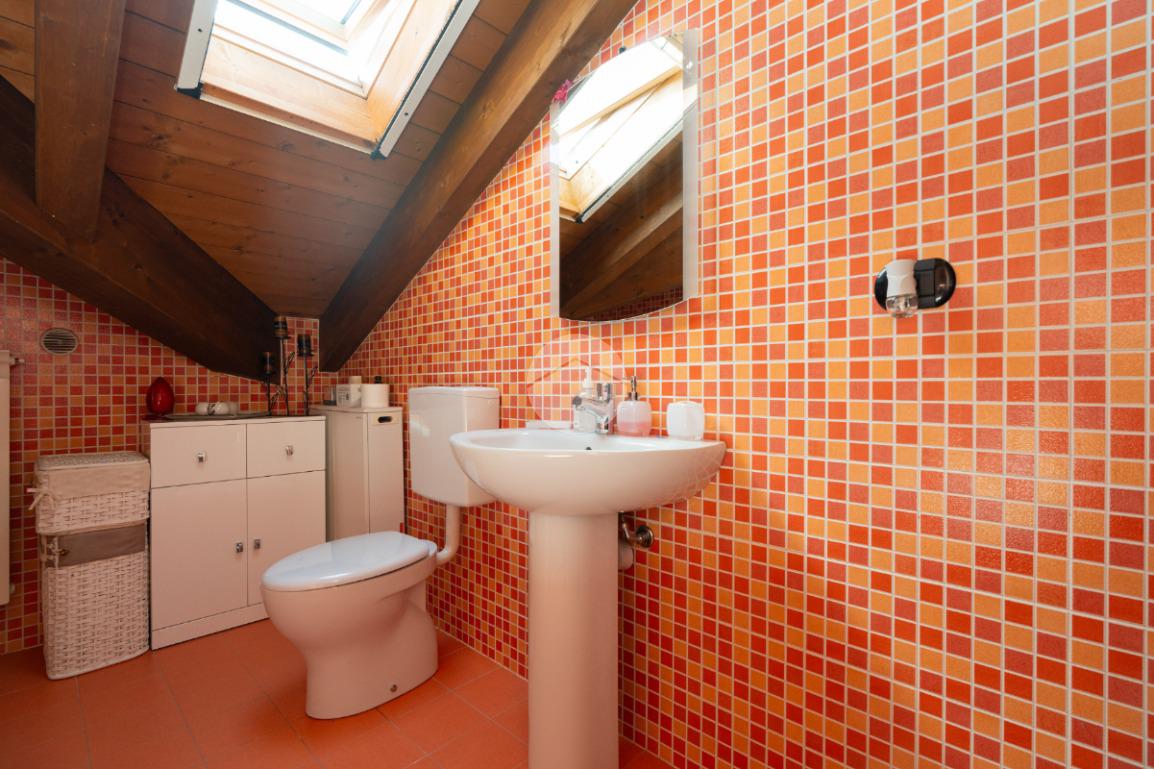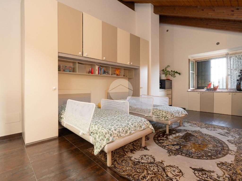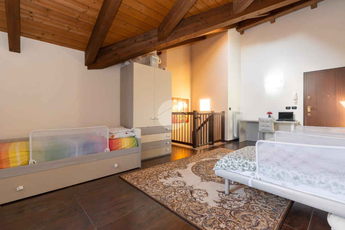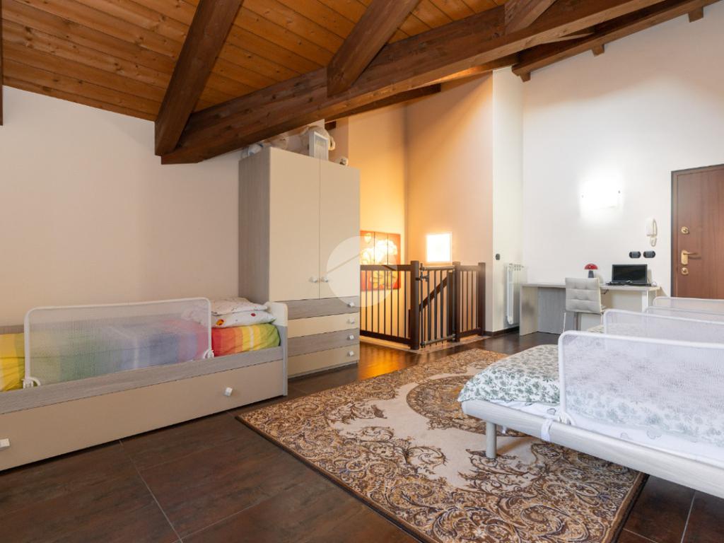 La palazzina edificata nel 2013 è situata in una zona tranquilla del paese, a pochi passi dalla stazione del treno e prossima anche al centro storico. L’appartamento si trova al secondo ed ultimo piano dello stabile dotato di ascensore. L’alloggio è stato ristrutturato con finiture moderne. Dalla porta blindata si accede alla cucina abitabile dotata di ampio terrazzo, completo di tende estive ed invernali, ideale per le calde giornate estive o momenti di relax. Il disimpegno conduce ad un’ulteriore stanza attualmente adibita a salotto ed al bagno finestrato dotato di doccia. La zona notte si trova al piano superiore mansardato, raggiungibile tramite una comoda scala interna oppure dalla scala condominiale ed è composta da due ampie camere da letto molto luminose ed ariose grazie alla presenza di finestre in ogni ambiente. Completa il piano il bagno finestrato dotato di vasca. Il riscaldamento è autonomo e la cantina sita al piano interrato completa la proprietà. Questo immobile è ideale per chi cerca spazi ampi con la possibilità di ricavare tre camere da letto, di cui una al primo piano abitativo. Si trova, inoltre, fuori dalla rotta aerea, ma comunque prossimo a tutti i servizi offerti dal paese.