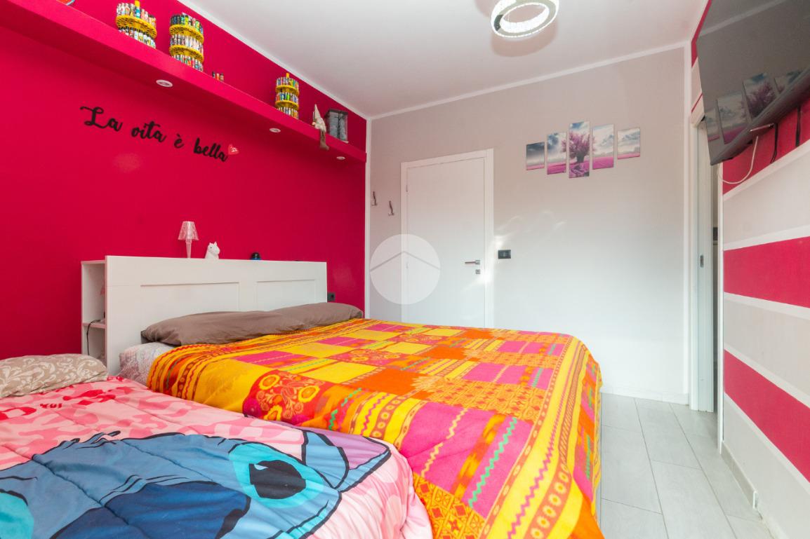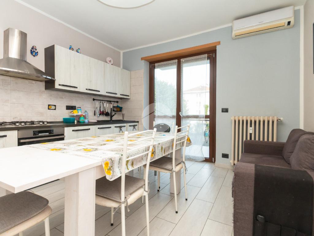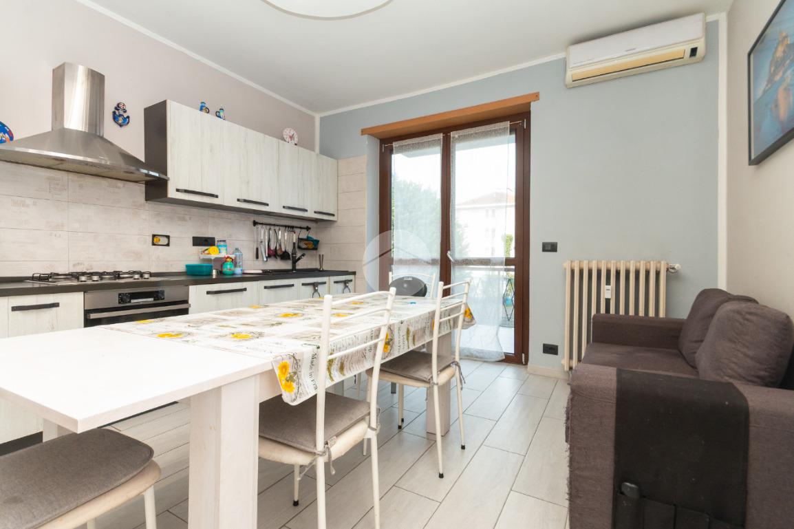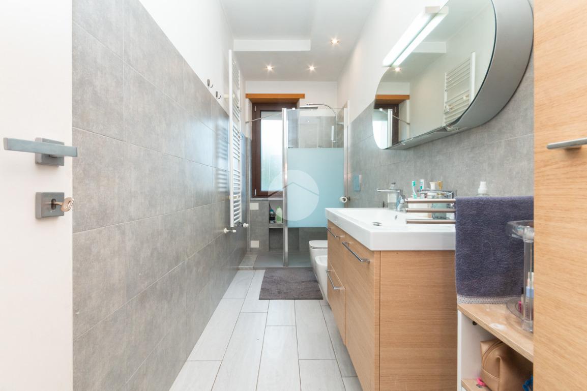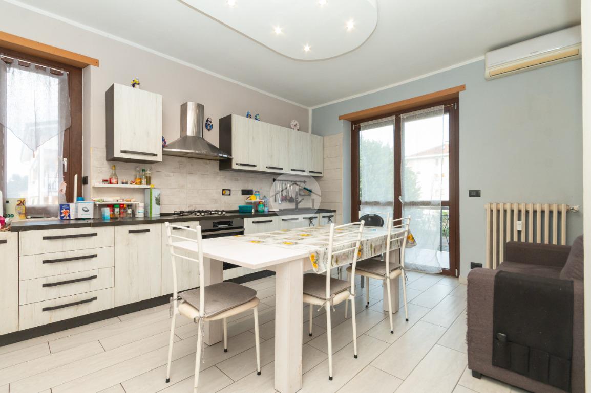 L’appartamento, situato al primo piano di una piccola palazzina degli anni ’70, si trova in una zona tranquilla, comodo al centro e vicino ai servizi che il paese è in grado di offrire. L’alloggio è stato completamente ristrutturato, a partire dagli impianti elettrico ed idraulico, agli infissi, alle porte interne e per finire la pavimentazione di tutta la superficie. Il portoncino blindato conduce al disimpegno dal quale è possibile accedere ad ogni ambiente della casa. La cucina è abitabile, in grado di ospitare una parete lineare di 5mt, ed è dotata di un balcone che affaccia direttamente sulla via, oltre ad una finestra che rende molto luminoso l’ambiente. Le due camere da letto, di cui una con cabina armadio, sono entrambe molto spaziose e sono fornite di balcone che dà sull’interno cortile. Il bagno è finestrato ed è dotato di una grande doccia. Inoltre è presente un ripostiglio che, date le sue generose dimensioni, è attualmente adibito a lavanderia. Il riscaldamento è centralizzato e grazie alle termo-valvole è possibile gestire in autonomia i consumi. L’appartamento gode di una tripla esposizione e ciò garantisce una totale luminosità. Completano la proprietà la cantina ed il box auto singolo a livello strada.