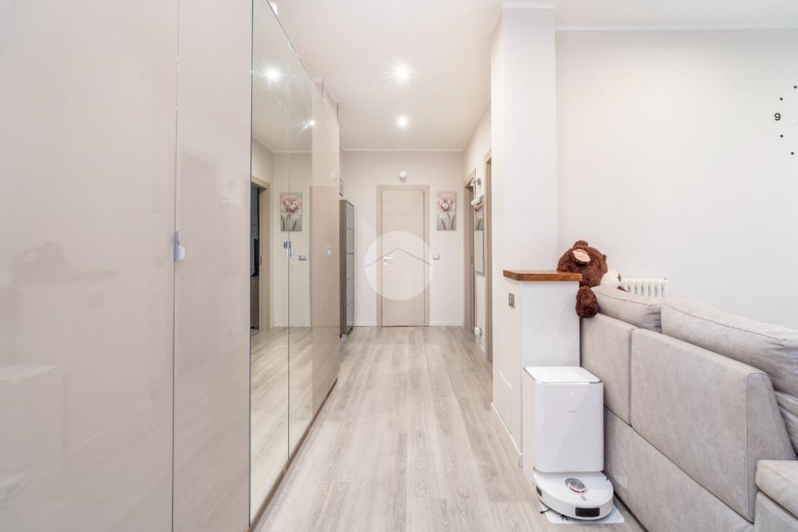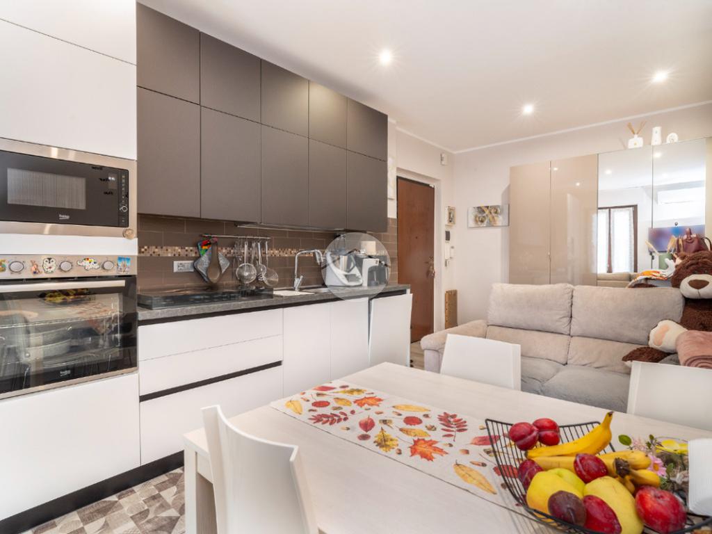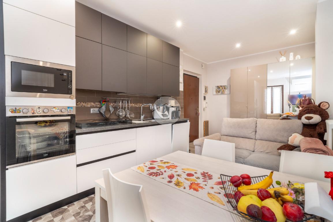 L'appartamento si trova all’ultimo piano di una palazzina situata in una posizione comoda ai servizi che il paese può offrire. L'alloggio è stato ristrutturato completamente pochi anni fa. Il portoncino blindato conduce alla zona giorno caratterizzata da un ampio divano oltre ad una parete attrezzata lineare, in prossimità della quale è possibile posizionare anche un tavolo con sei sedie. Il balcone, dal quale si accede dalla cucina, è dotato di tenda estiva. Il corridoio conduce alle due camere da letto, entrambe molto spaziose ed una sola dotata si balcone. Il bagno che serve il piano è fornito di doccia ed è presente un ulteriore locale adibito a lavanderia. Gli infissi sono stati tutti sostituiti recentemente e sono in legno con doppio vetro, il ché favorisce un miglior isolamento termico. Completa la proprietà la cantina di pertinenza dell’alloggio.
