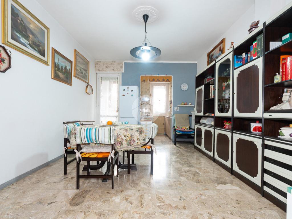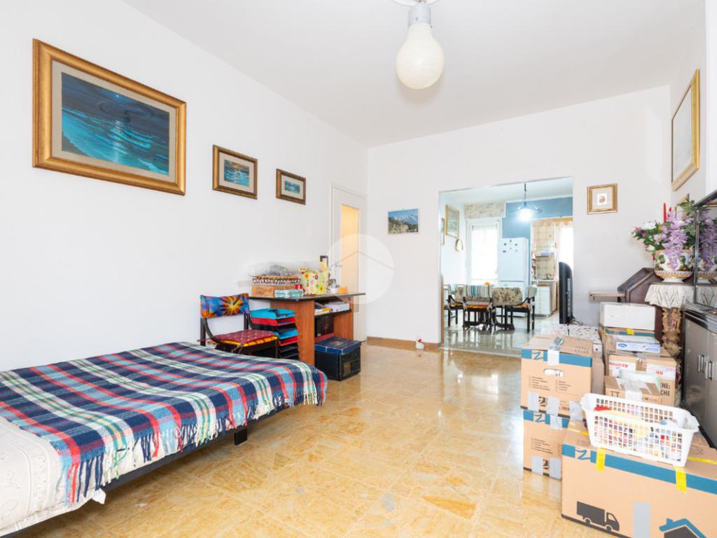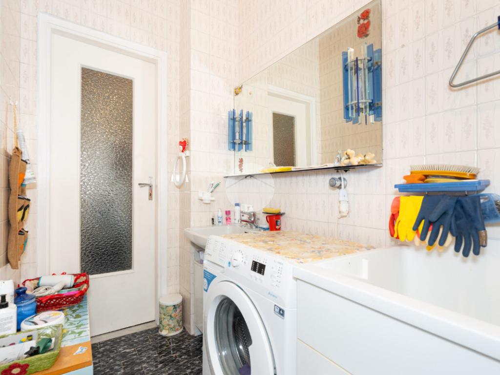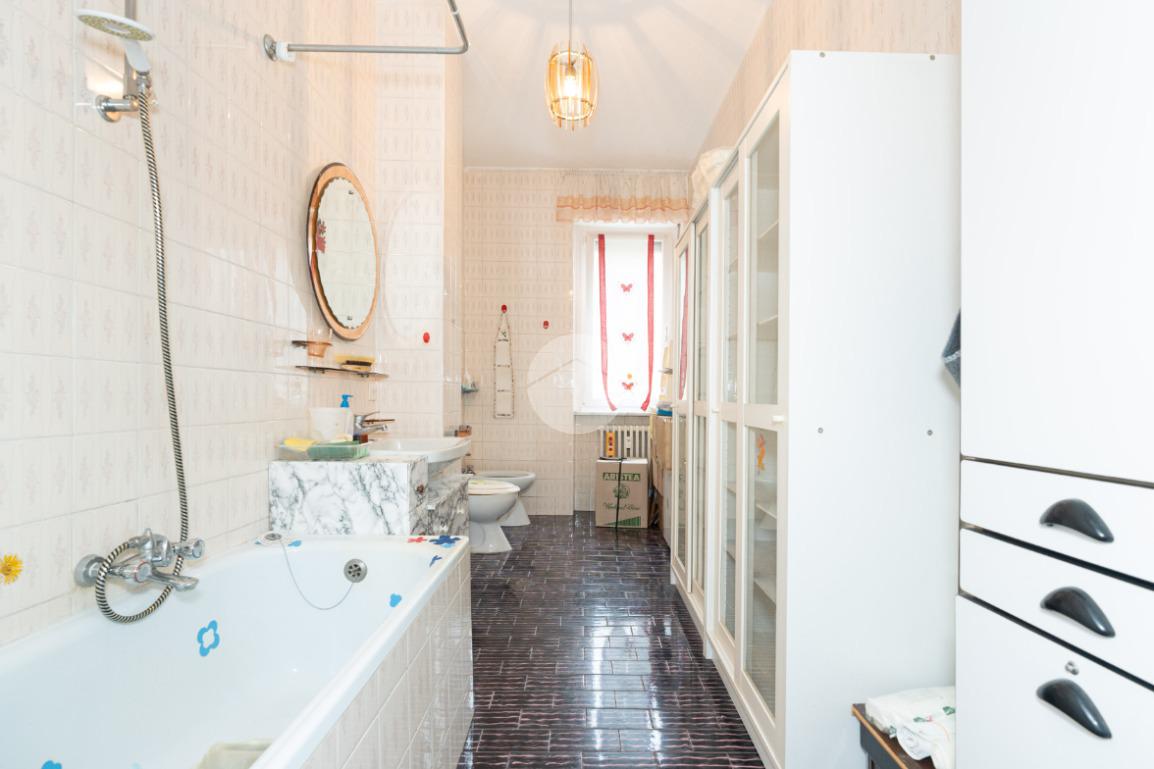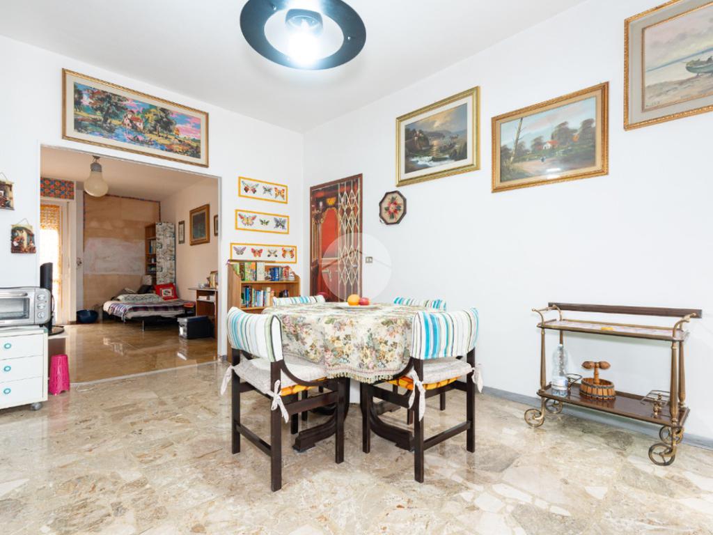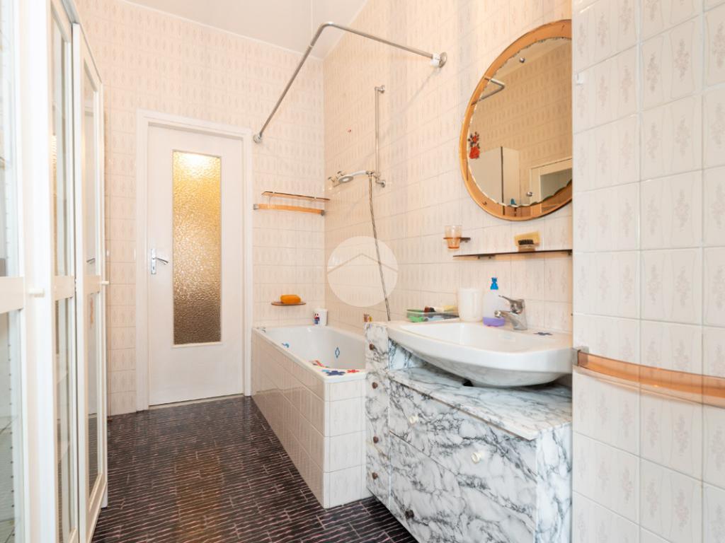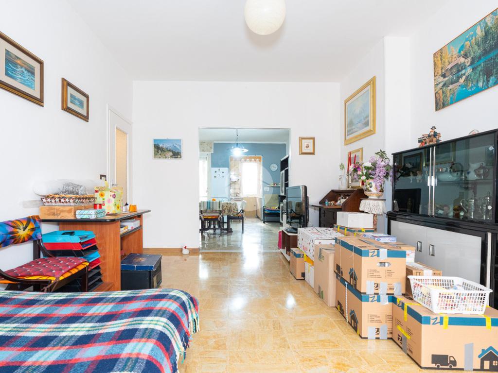 L’alloggio si trova al primo piano di uno stabile degli anni ’60 dotato però di ascensore. La palazzina si trova in una via centrale del paese, quindi comoda a tutti i servizi offerti da quest’ultimo, ma in un contesto tranquillo e residenziale. La porta di ingresso si apre su un lungo corridoio che collega tutti gli ambienti della casa. La zona giorno è attualmente composta da cucinotto con sala da pranzo e soggiorno. All’interno della sala da pranzo è presente un ampio ripostiglio sfruttabile anche come dispensa. Da questo ambiente si accede ad un piccolo balcone verandato. La zona notte è invece composta da due ampie camere matrimoniali e sono presenti anche i doppi servizi, uno dei quali adibito parzialmente a lavanderia. Il salotto ed una delle due camere da letto presentano un balcone vivibile che affaccia su strada. Completano la proprietà il box auto singolo a livello strada e la cantina. L’immobile si presenta in stato originale, ad eccezione degli infissi che sono stati sostituiti di recente, il che garantisce di personalizzare questo appartamento in base ai propri gusti ed esigenze sfruttando l’ampia metratura che lo caratterizza.