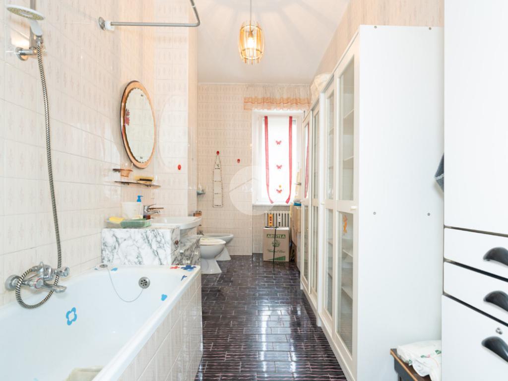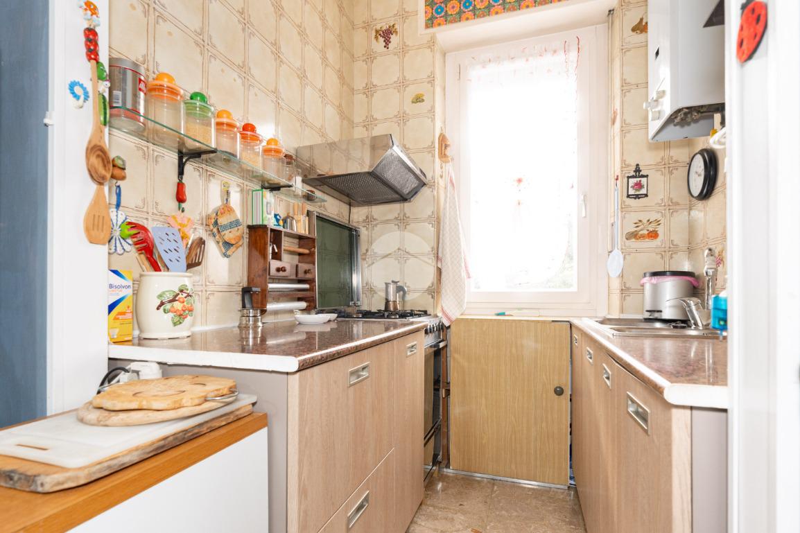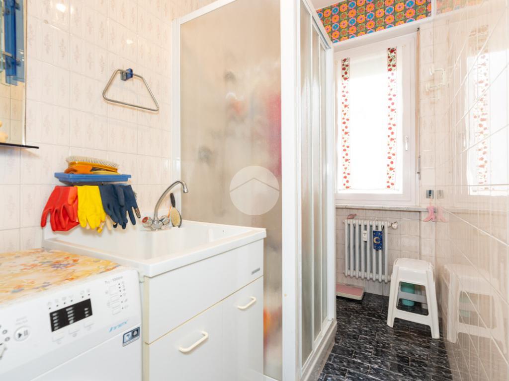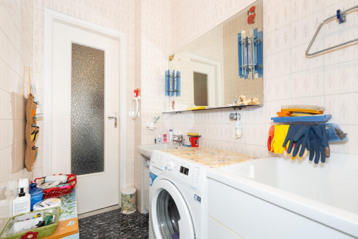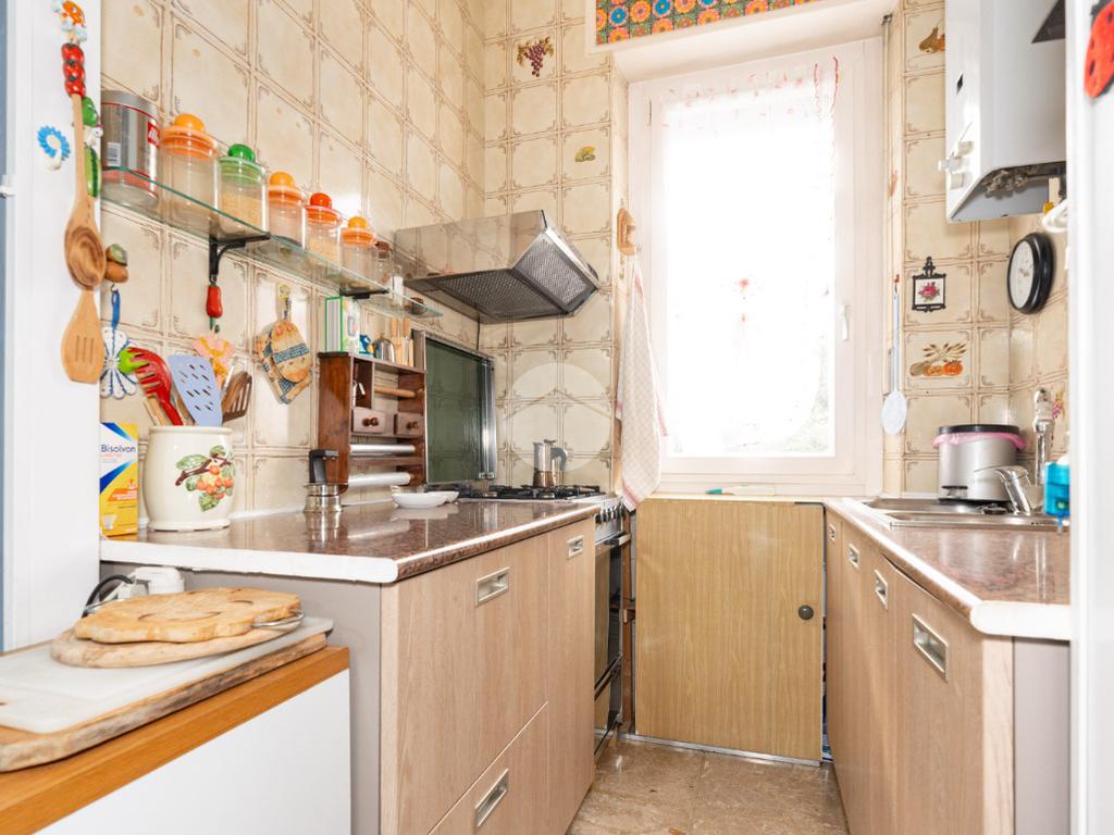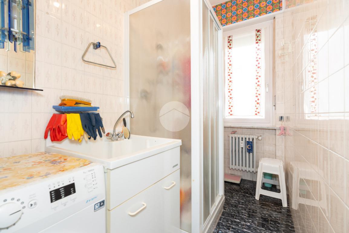 L’alloggio si trova al primo piano di uno stabile degli anni ’60 dotato però di ascensore. La palazzina si trova in una via centrale del paese, quindi comoda a tutti i servizi offerti da quest’ultimo, ma in un contesto tranquillo e residenziale. La porta di ingresso si apre su un lungo corridoio che collega tutti gli ambienti della casa. La zona giorno è attualmente composta da cucinotto con sala da pranzo e soggiorno. All’interno della sala da pranzo è presente un ampio ripostiglio sfruttabile anche come dispensa. Da questo ambiente si accede ad un piccolo balcone verandato. La zona notte è invece composta da due ampie camere matrimoniali e sono presenti anche i doppi servizi, uno dei quali adibito parzialmente a lavanderia. Il salotto ed una delle due camere da letto presentano un balcone vivibile che affaccia su strada. Completano la proprietà il box auto singolo a livello strada e la cantina. L’immobile si presenta in stato originale, ad eccezione degli infissi che sono stati sostituiti di recente, il che garantisce di personalizzare questo appartamento in base ai propri gusti ed esigenze sfruttando l’ampia metratura che lo caratterizza.