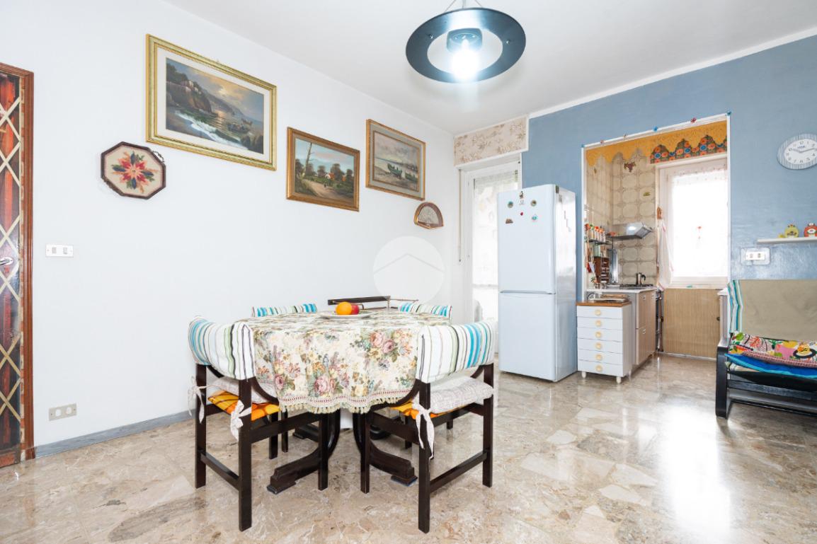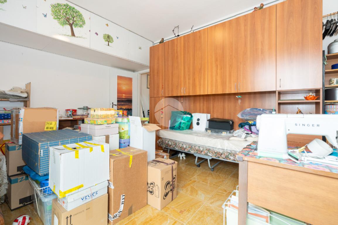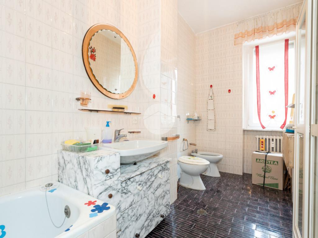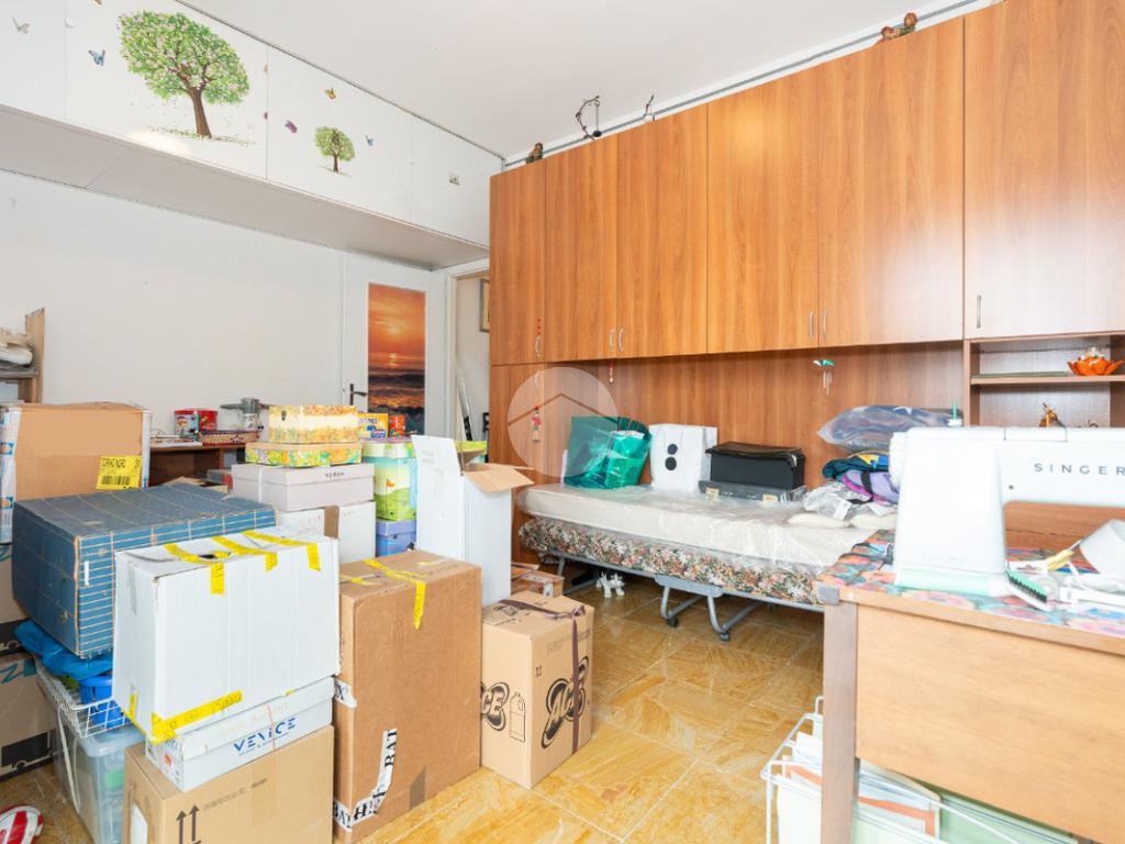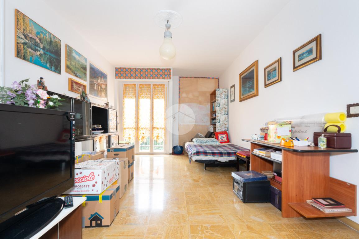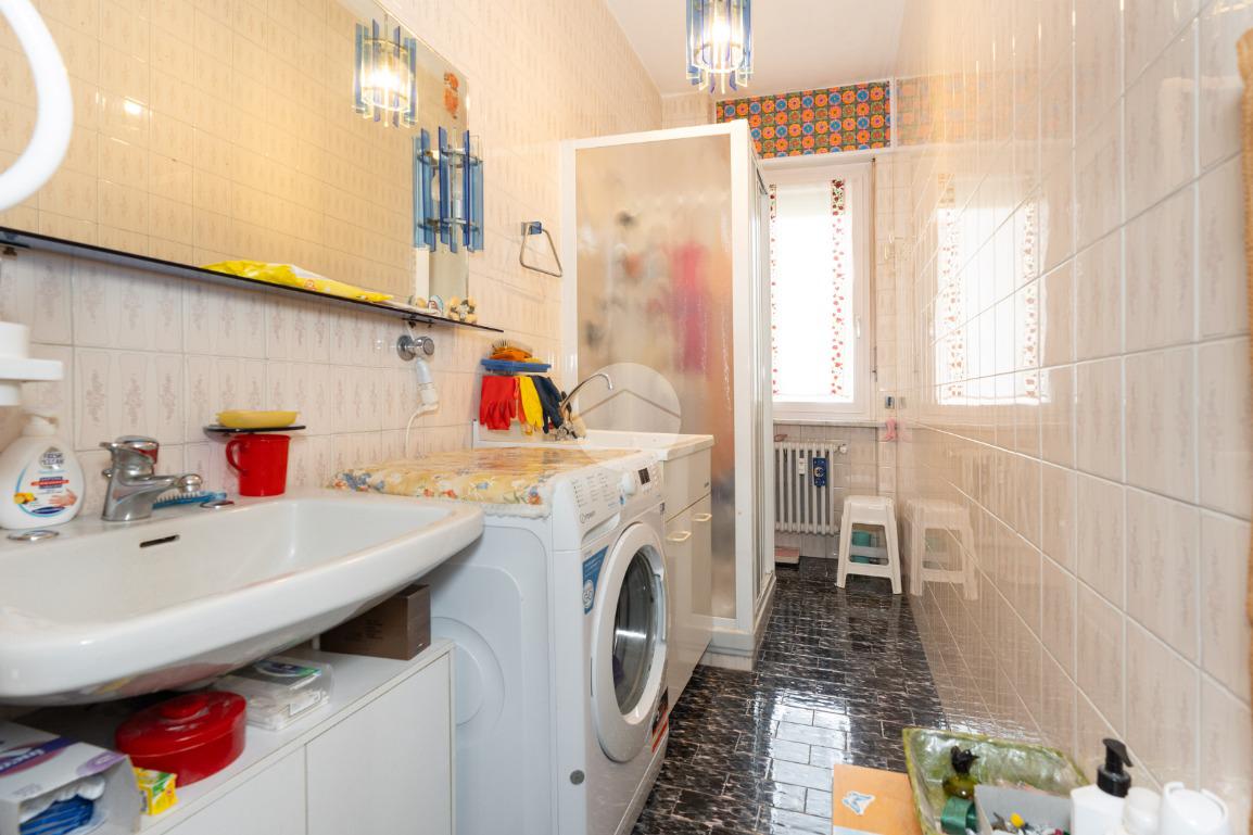L’alloggio si trova al primo piano di uno stabile degli anni ’60 dotato però di ascensore. La palazzina si trova in una via centrale del paese, quindi comoda a tutti i servizi offerti da quest’ultimo, ma in un contesto tranquillo e residenziale. La porta di ingresso si apre su un lungo corridoio che collega tutti gli ambienti della casa. La zona giorno è attualmente composta da cucinotto con sala da pranzo e soggiorno. All’interno della sala da pranzo è presente un ampio ripostiglio sfruttabile anche come dispensa. Da questo ambiente si accede ad un piccolo balcone verandato. La zona notte è invece composta da due ampie camere matrimoniali e sono presenti anche i doppi servizi, uno dei quali adibito parzialmente a lavanderia. Il salotto ed una delle due camere da letto presentano un balcone vivibile che affaccia su strada. Completano la proprietà il box auto singolo a livello strada e la cantina. L’immobile si presenta in stato originale, ad eccezione degli infissi che sono stati sostituiti di recente, il che garantisce di personalizzare questo appartamento in base ai propri gusti ed esigenze sfruttando l’ampia metratura che lo caratterizza.