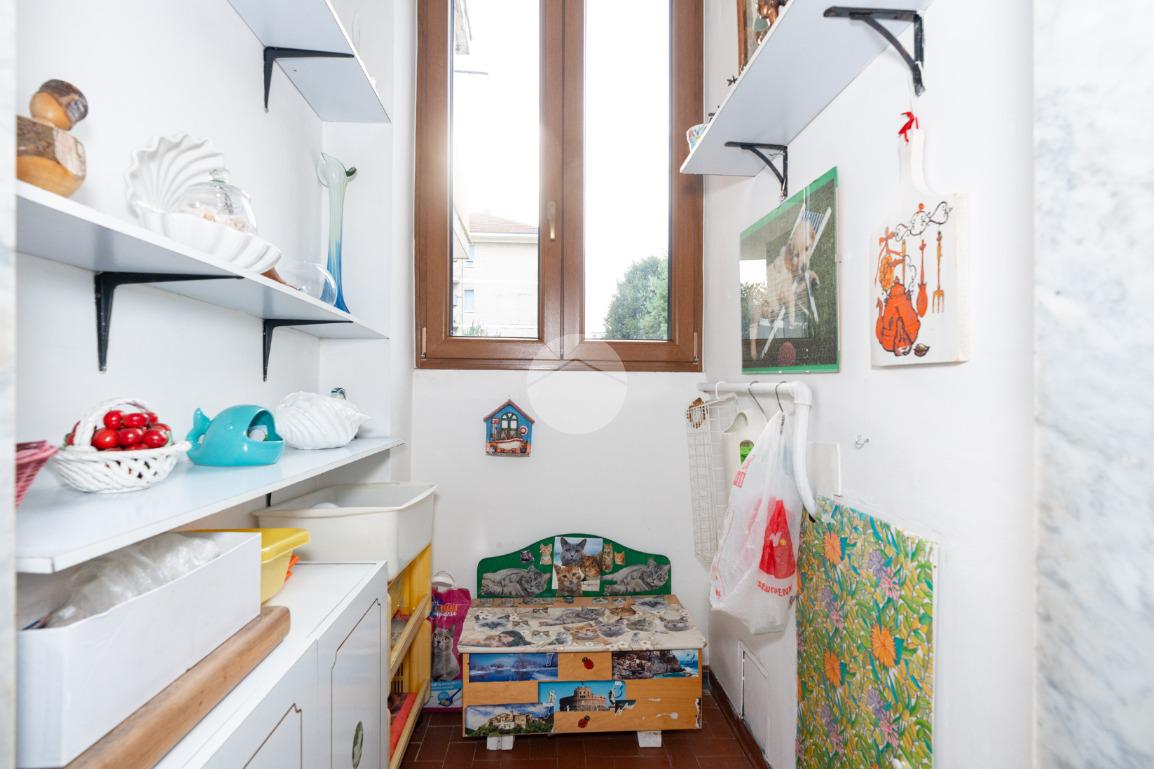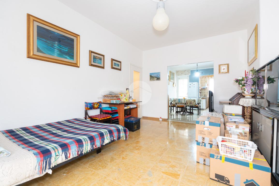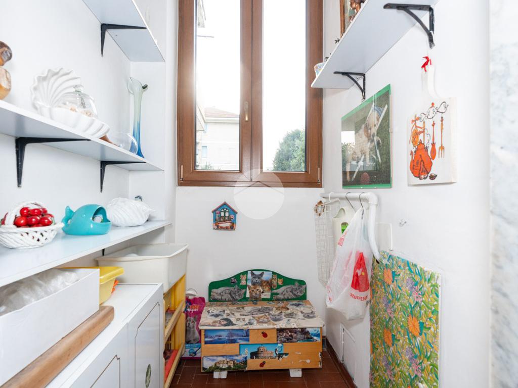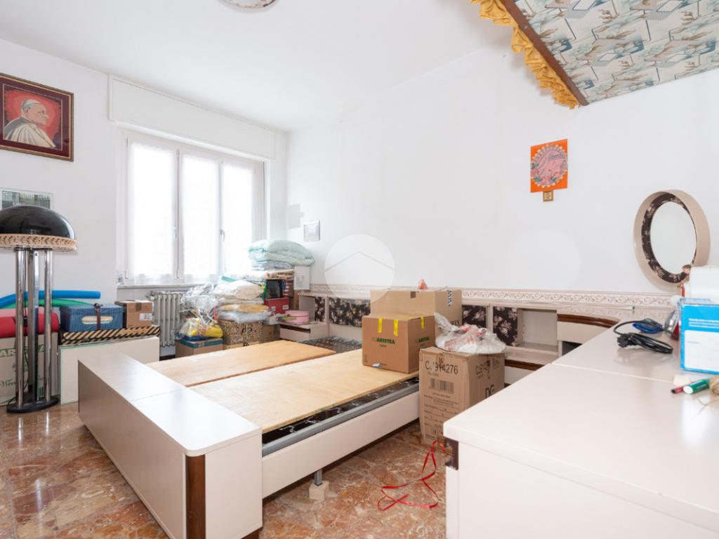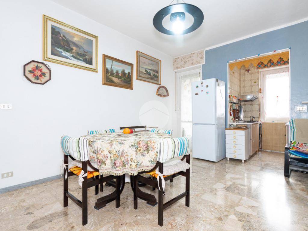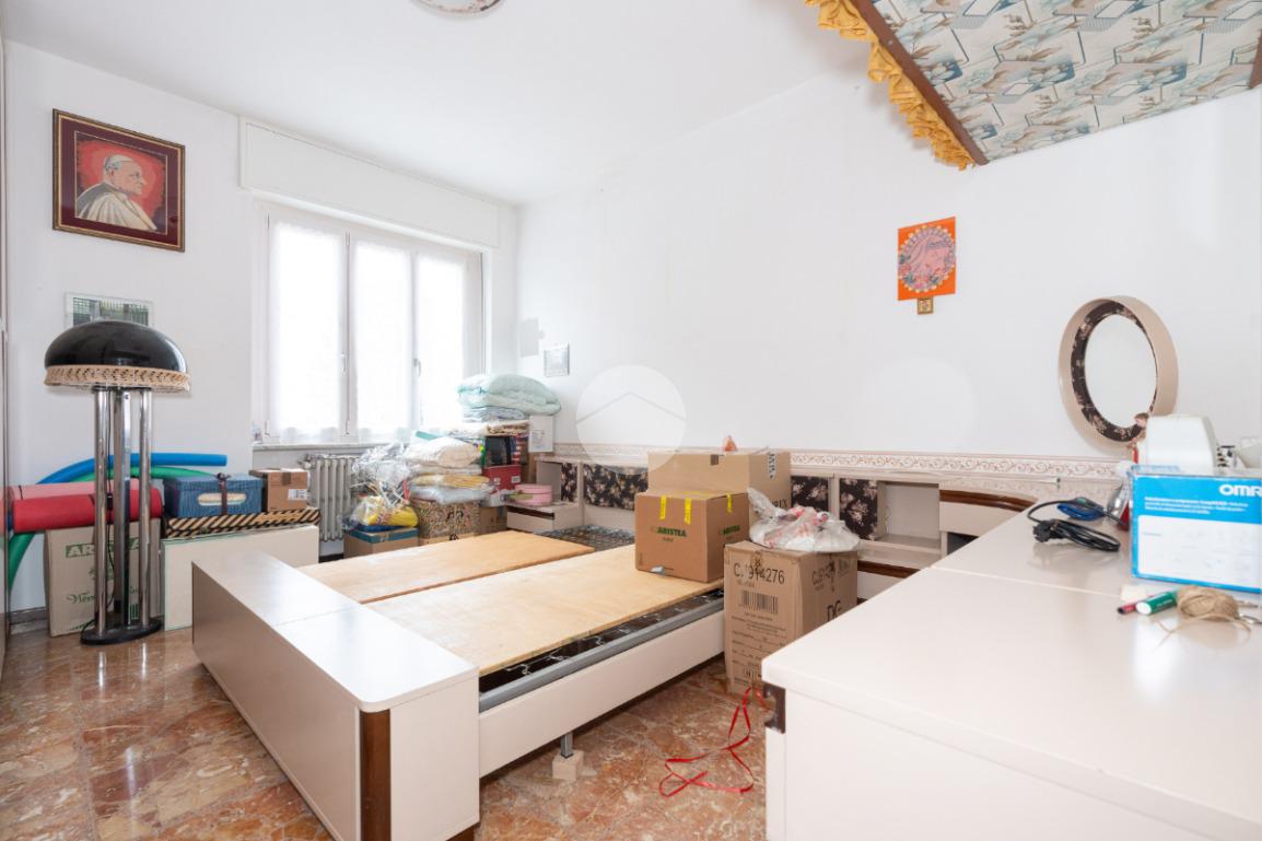 L’alloggio si trova al primo piano di uno stabile degli anni ’60 dotato però di ascensore. La palazzina si trova in una via centrale del paese, quindi comoda a tutti i servizi offerti da quest’ultimo, ma in un contesto tranquillo e residenziale. La porta di ingresso si apre su un lungo corridoio che collega tutti gli ambienti della casa. La zona giorno è attualmente composta da cucinotto con sala da pranzo e soggiorno. All’interno della sala da pranzo è presente un ampio ripostiglio sfruttabile anche come dispensa. Da questo ambiente si accede ad un piccolo balcone verandato. La zona notte è invece composta da due ampie camere matrimoniali e sono presenti anche i doppi servizi, uno dei quali adibito parzialmente a lavanderia. Il salotto ed una delle due camere da letto presentano un balcone vivibile che affaccia su strada. Completano la proprietà il box auto singolo a livello strada e la cantina. L’immobile si presenta in stato originale, ad eccezione degli infissi che sono stati sostituiti di recente, il che garantisce di personalizzare questo appartamento in base ai propri gusti ed esigenze sfruttando l’ampia metratura che lo caratterizza.