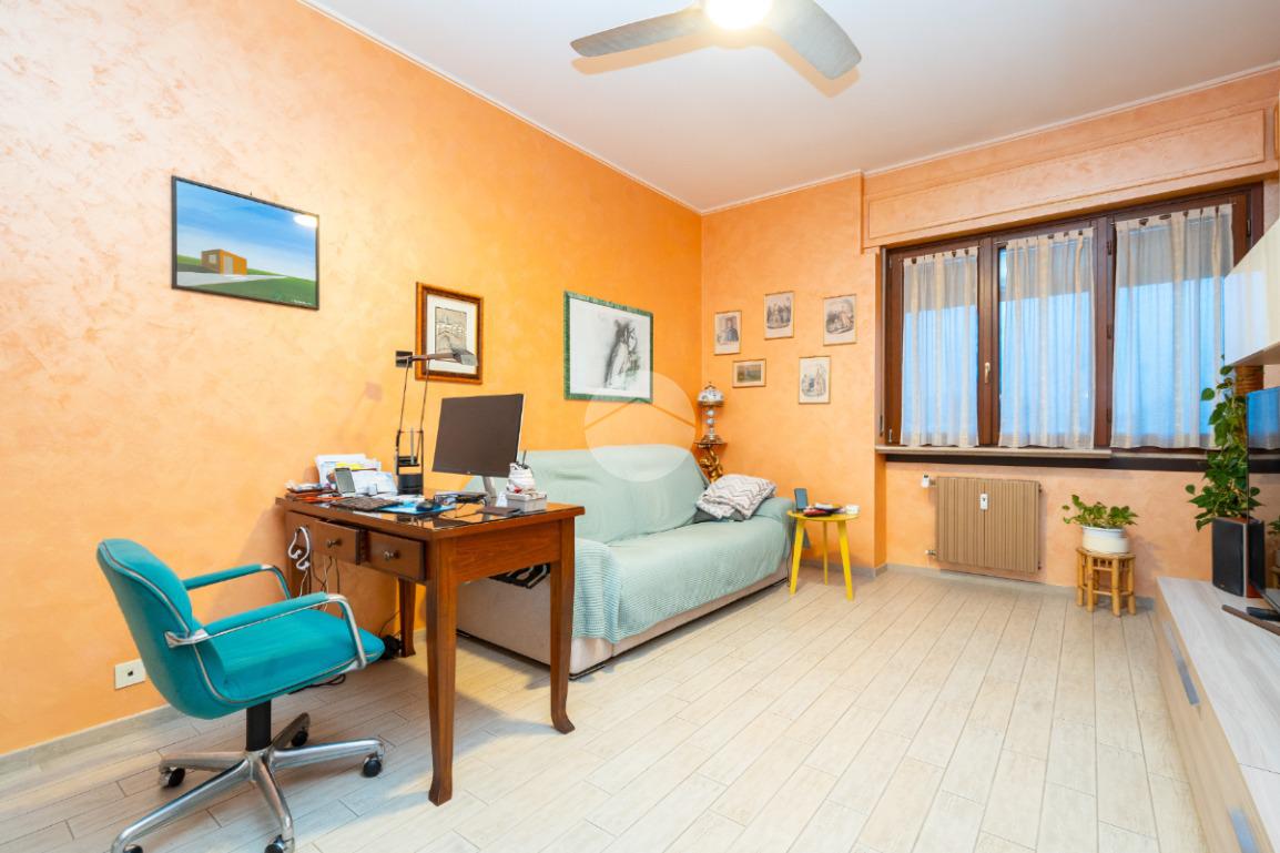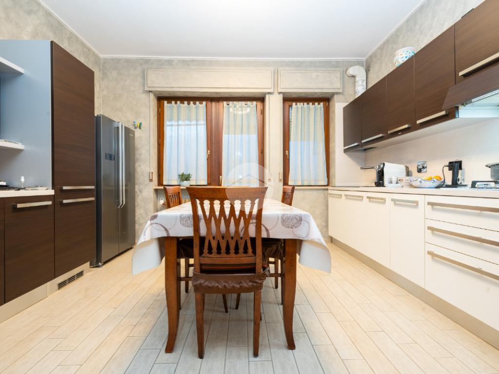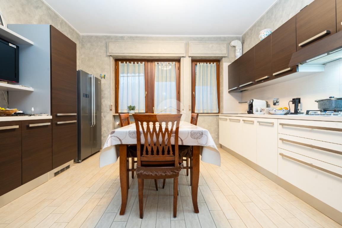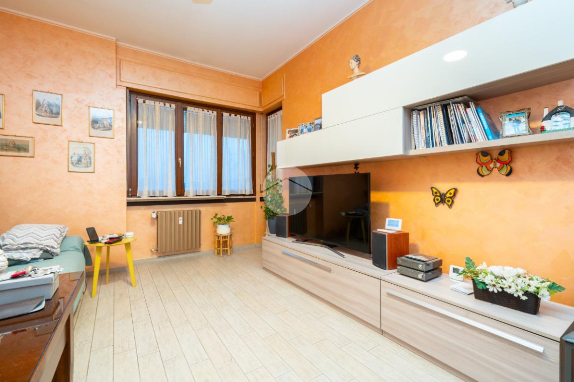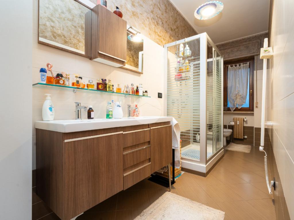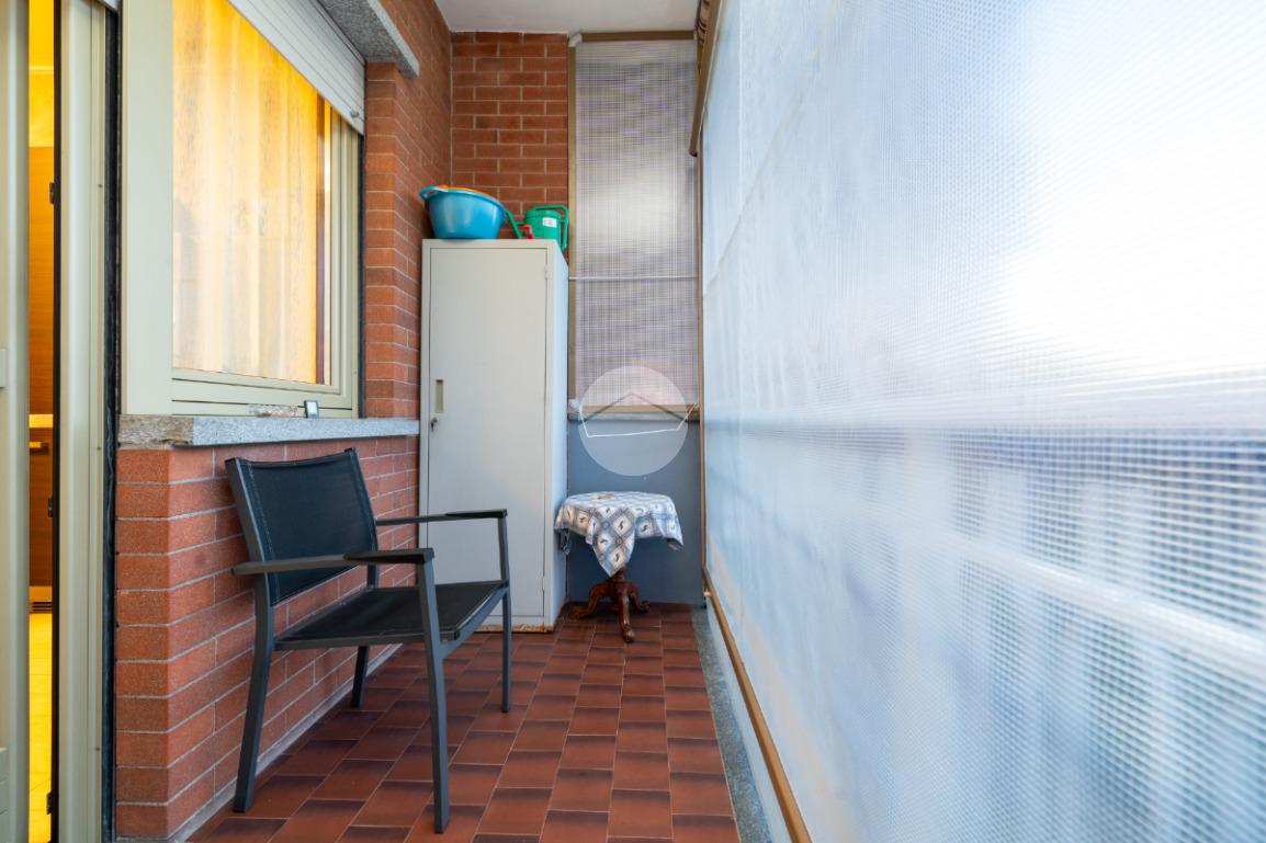 L’alloggio si trova al secondo piano di una palazzina degli anni ’70 che è stato oggetto di lavori di riqualificazione, come ad esempio il cappotto esterno che limita la dispersione di calore. L’immobile si trova nei pressi della stazione e prossimo a tutti i servizi che il paese è in grado di offrire, rimanendo però fuori dalla rotta aerea. Lo stabile è dotato di ascensore. L’appartamento è stato ristrutturato nel 2011 con materiali di pregio. Il portoncino blindato da accesso al disimpegno che collega tutti gli ambienti della casa. La cucina è ampiamente abitabile ed è in grado di ospitare una cucina lineare, un mobile tv ed un tavolo con quattro sedie. Dalla cucina si accede al balcone verandato. La zona notte è invece composta da due ampie camere da letto, una delle quali attualmente adibita a soggiorno/studio. Da entrambe le camere si accede al secondo balcone che affaccia sulla via. Il bagno finemente rivisto è finestrato e completo di box doccia. Completa il piano abitativo un vano ripostiglio/lavanderia. Il riscaldamento è centralizzato ma regolabile con le termovalvole. La cantina al piano interrato è di generose dimensioni. Il box auto singolo completa la proprietà. L’alloggio presenta ambienti luminosi ed ariosi, grazie alla presenza di finestre e porte finestre in ogni stanza.