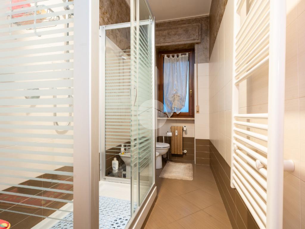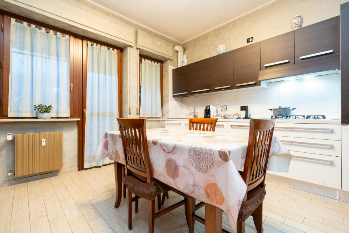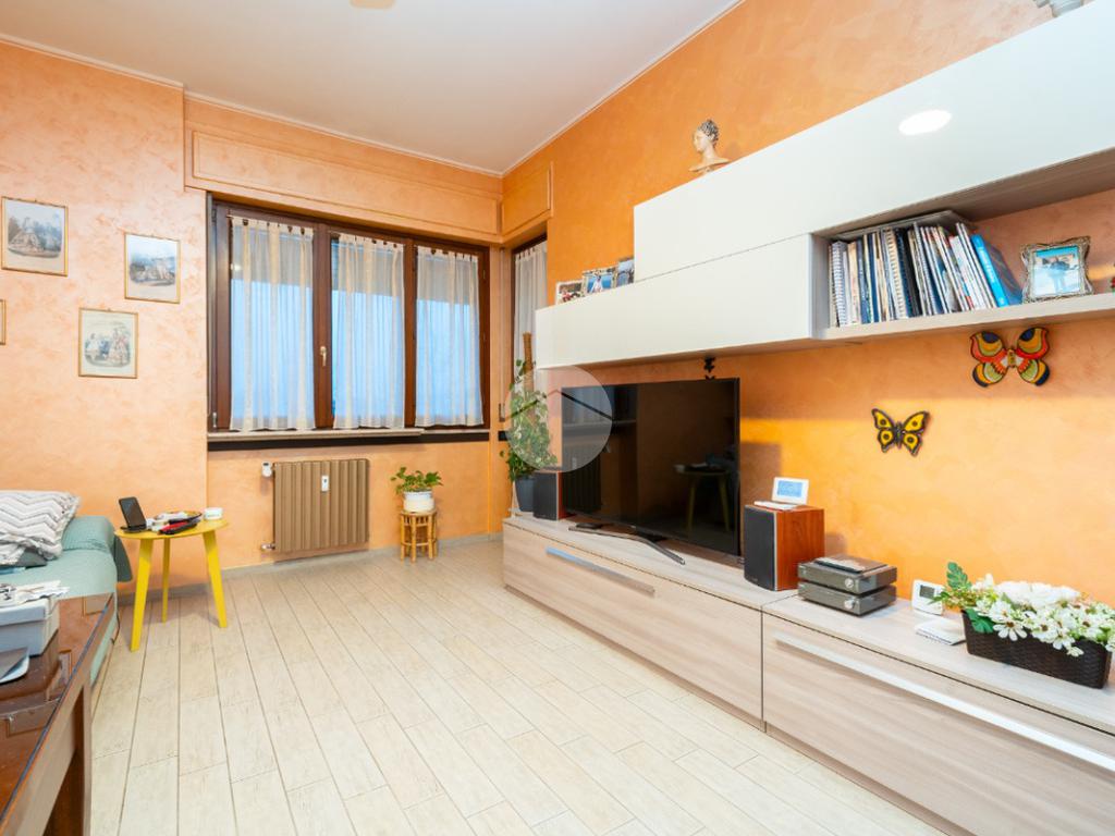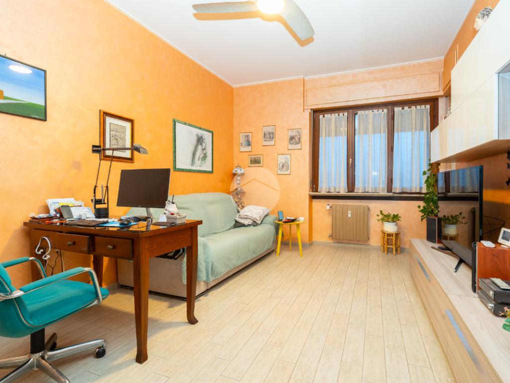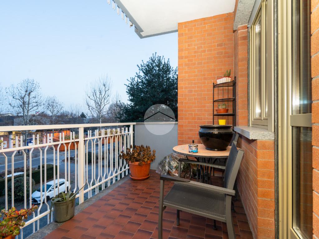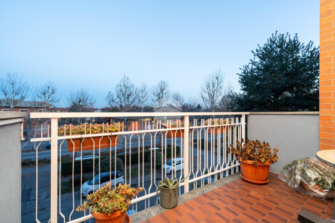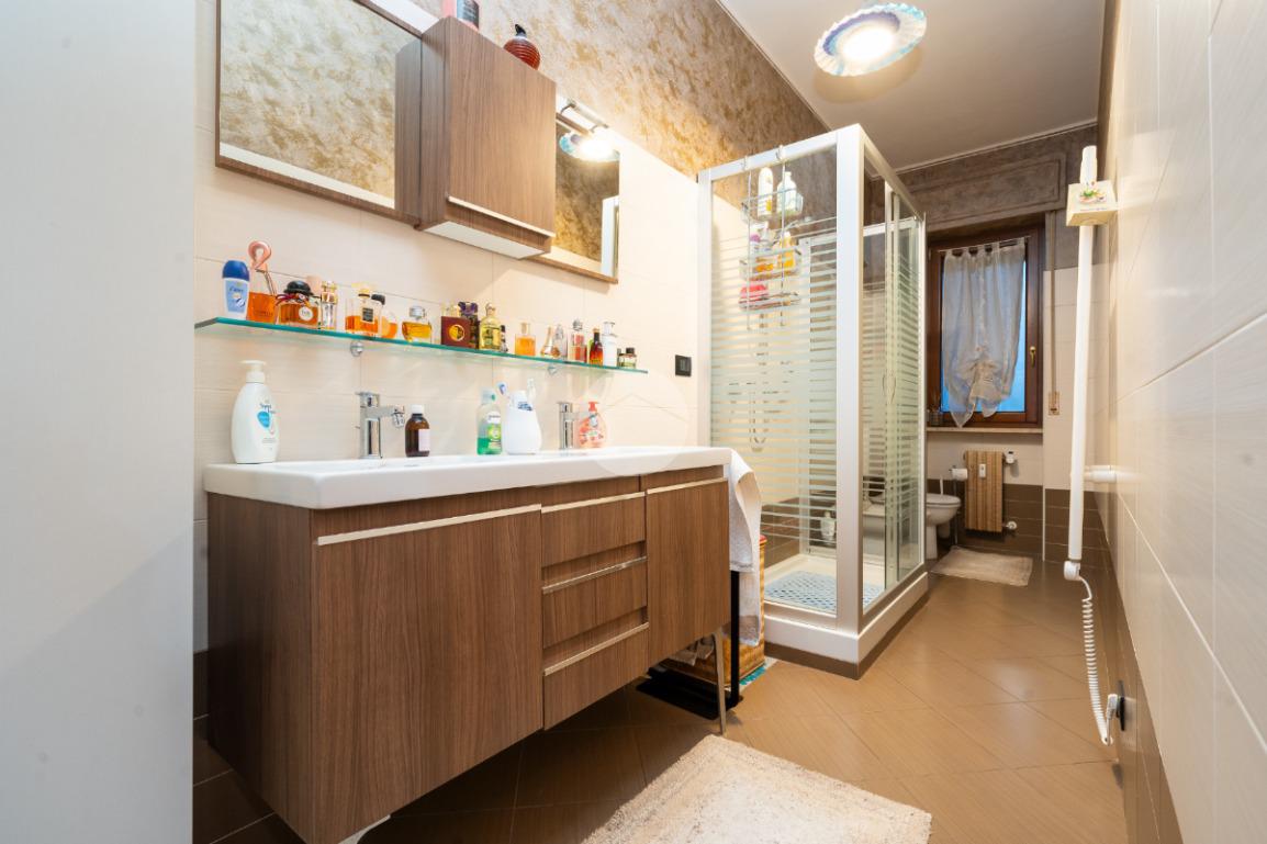 L’alloggio si trova al secondo piano di una palazzina degli anni ’70 che è stato oggetto di lavori di riqualificazione, come ad esempio il cappotto esterno che limita la dispersione di calore. L’immobile si trova nei pressi della stazione e prossimo a tutti i servizi che il paese è in grado di offrire, rimanendo però fuori dalla rotta aerea. Lo stabile è dotato di ascensore. L’appartamento è stato ristrutturato nel 2011 con materiali di pregio. Il portoncino blindato da accesso al disimpegno che collega tutti gli ambienti della casa. La cucina è ampiamente abitabile ed è in grado di ospitare una cucina lineare, un mobile tv ed un tavolo con quattro sedie. Dalla cucina si accede al balcone verandato. La zona notte è invece composta da due ampie camere da letto, una delle quali attualmente adibita a soggiorno/studio. Da entrambe le camere si accede al secondo balcone che affaccia sulla via. Il bagno finemente rivisto è finestrato e completo di box doccia. Completa il piano abitativo un vano ripostiglio/lavanderia. Il riscaldamento è centralizzato ma regolabile con le termovalvole. La cantina al piano interrato è di generose dimensioni. Il box auto singolo completa la proprietà. L’alloggio presenta ambienti luminosi ed ariosi, grazie alla presenza di finestre e porte finestre in ogni stanza.