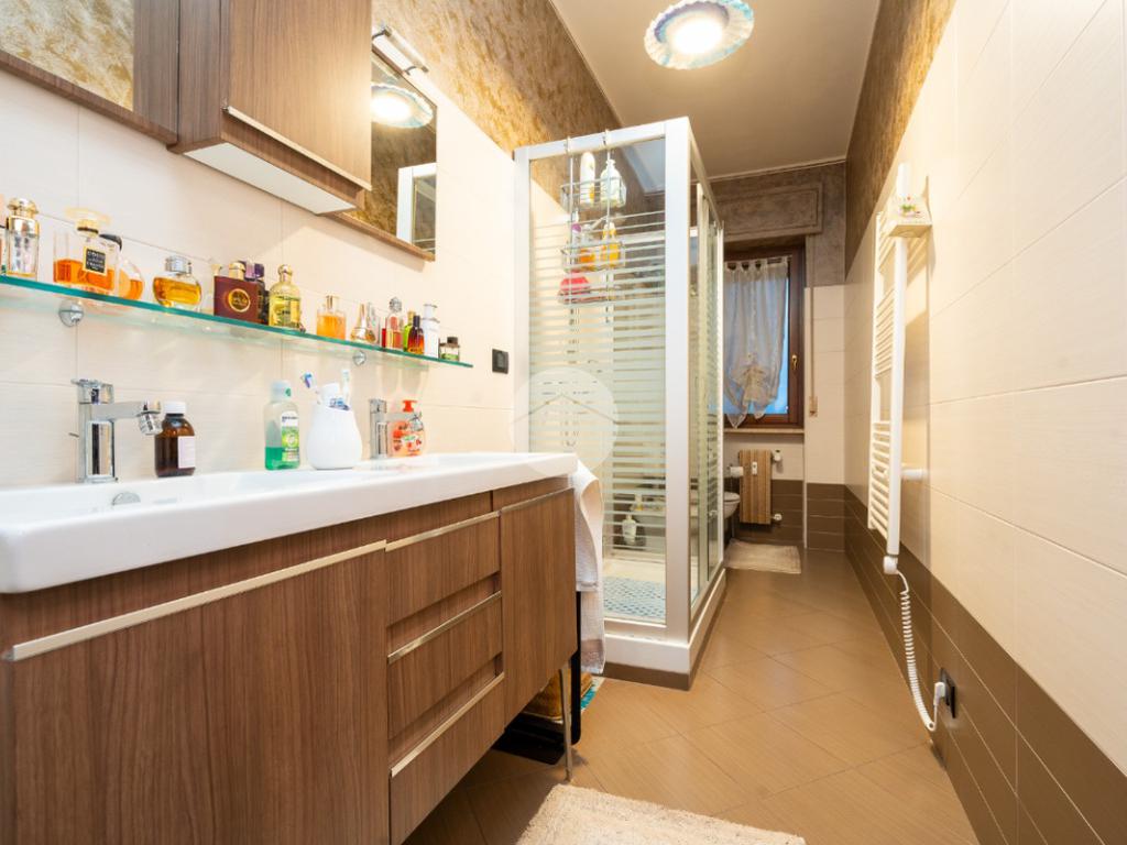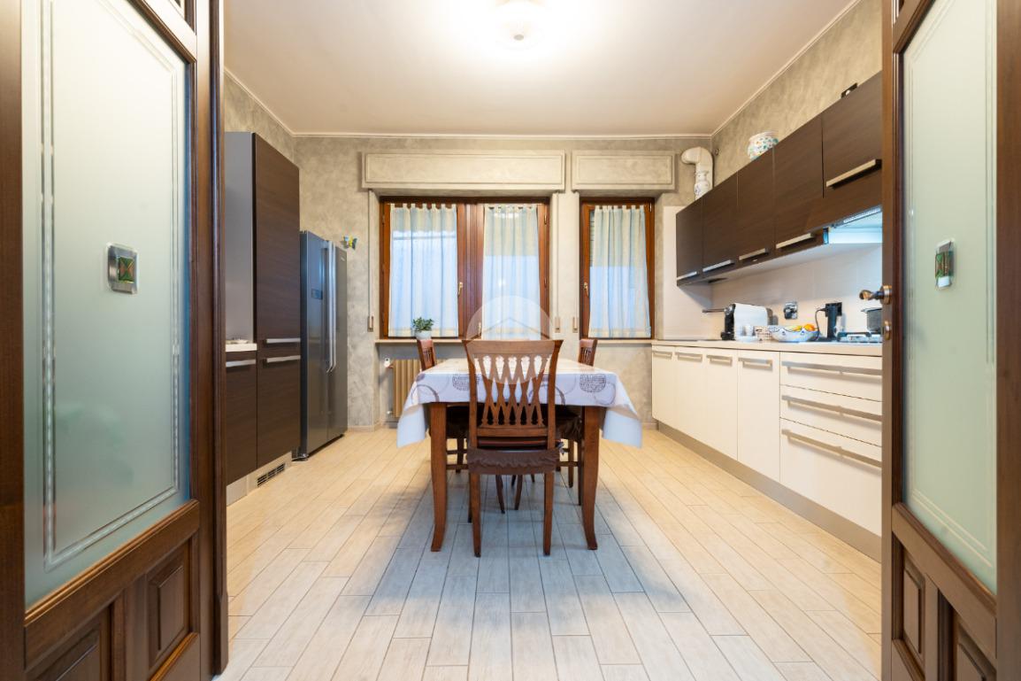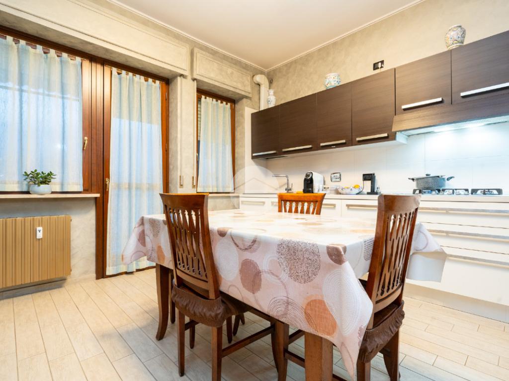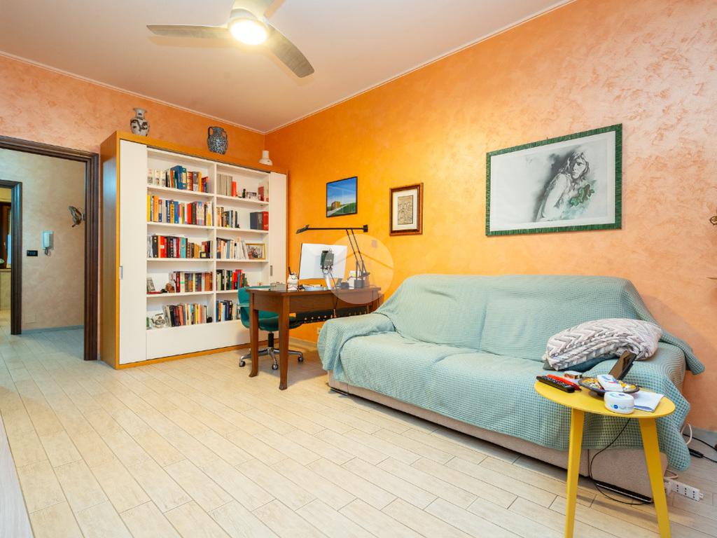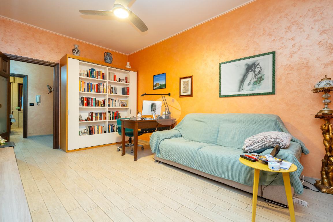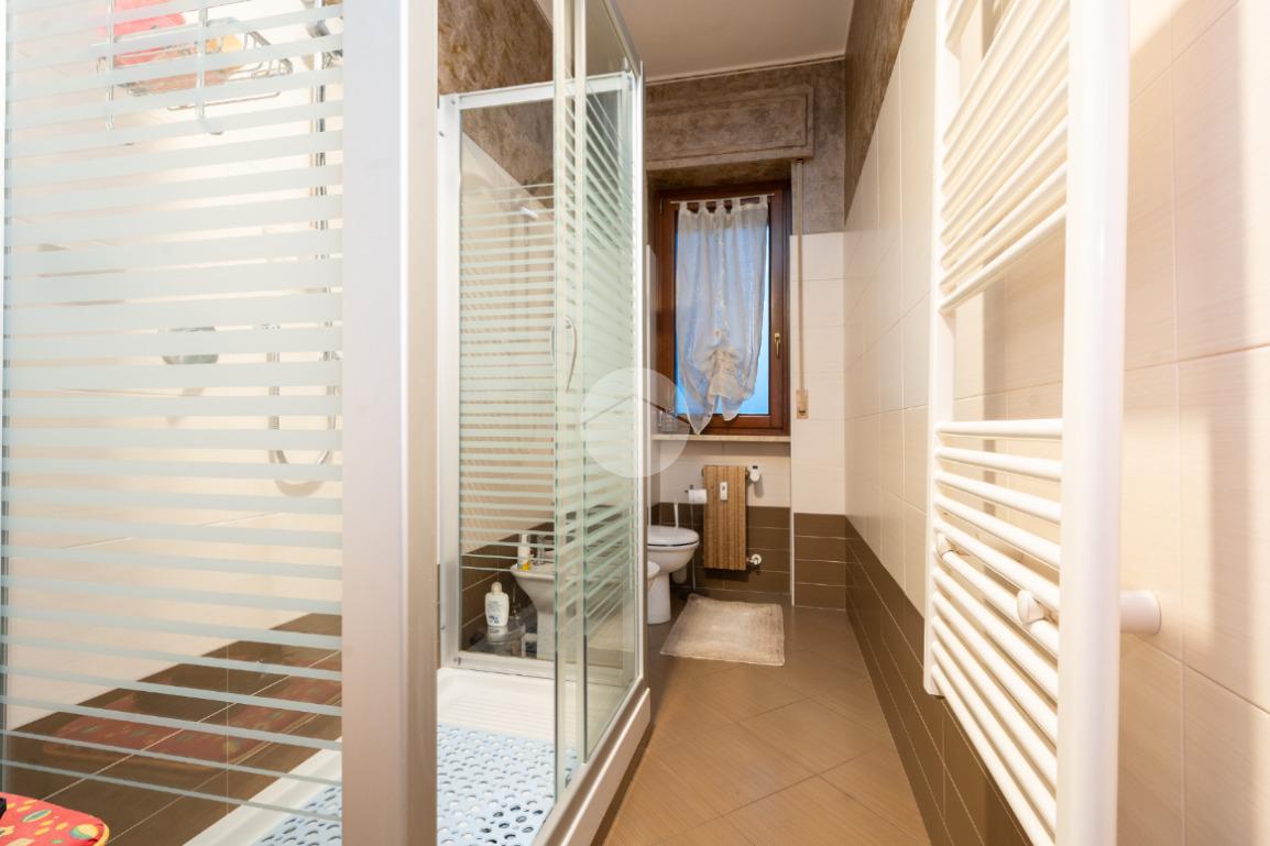 L’alloggio si trova al secondo piano di una palazzina degli anni ’70 che è stato oggetto di lavori di riqualificazione, come ad esempio il cappotto esterno che limita la dispersione di calore. L’immobile si trova nei pressi della stazione e prossimo a tutti i servizi che il paese è in grado di offrire, rimanendo però fuori dalla rotta aerea. Lo stabile è dotato di ascensore. L’appartamento è stato ristrutturato nel 2011 con materiali di pregio. Il portoncino blindato da accesso al disimpegno che collega tutti gli ambienti della casa. La cucina è ampiamente abitabile ed è in grado di ospitare una cucina lineare, un mobile tv ed un tavolo con quattro sedie. Dalla cucina si accede al balcone verandato. La zona notte è invece composta da due ampie camere da letto, una delle quali attualmente adibita a soggiorno/studio. Da entrambe le camere si accede al secondo balcone che affaccia sulla via. Il bagno finemente rivisto è finestrato e completo di box doccia. Completa il piano abitativo un vano ripostiglio/lavanderia. Il riscaldamento è centralizzato ma regolabile con le termovalvole. La cantina al piano interrato è di generose dimensioni. Il box auto singolo completa la proprietà. L’alloggio presenta ambienti luminosi ed ariosi, grazie alla presenza di finestre e porte finestre in ogni stanza.