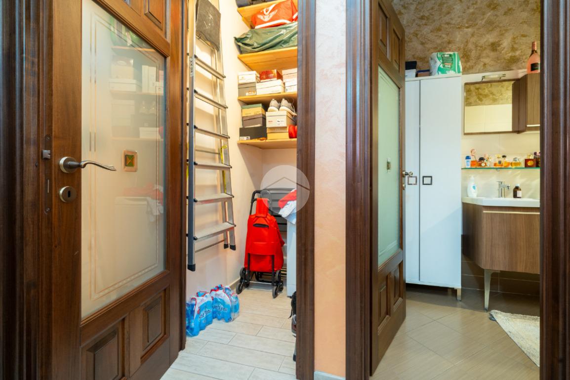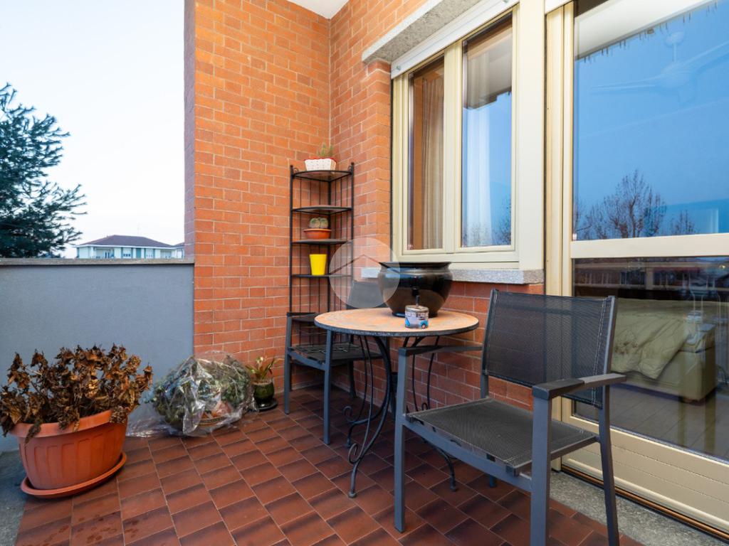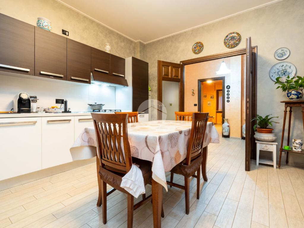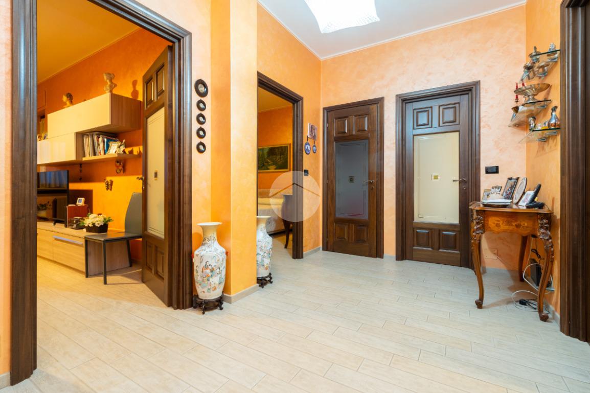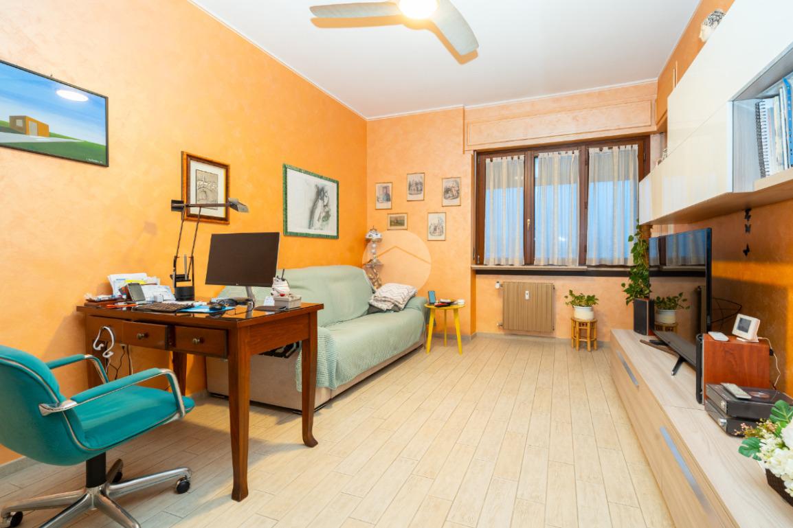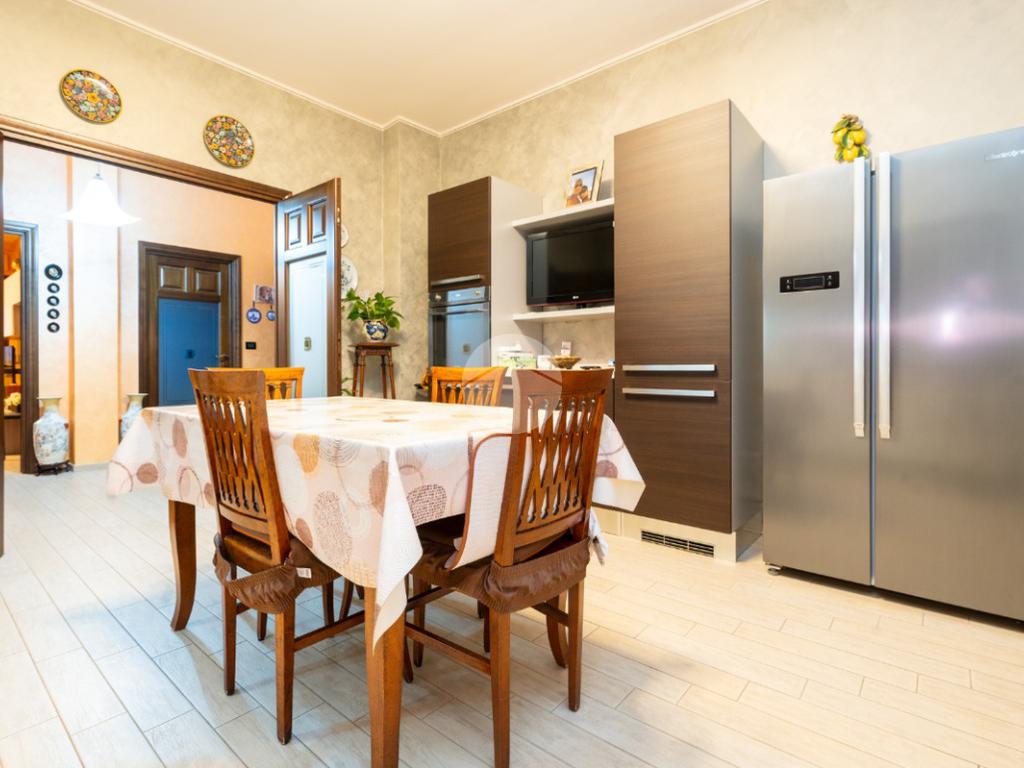 L’alloggio si trova al secondo piano di una palazzina degli anni ’70 che è stato oggetto di lavori di riqualificazione, come ad esempio il cappotto esterno che limita la dispersione di calore. L’immobile si trova nei pressi della stazione e prossimo a tutti i servizi che il paese è in grado di offrire, rimanendo però fuori dalla rotta aerea. Lo stabile è dotato di ascensore. L’appartamento è stato ristrutturato nel 2011 con materiali di pregio. Il portoncino blindato da accesso al disimpegno che collega tutti gli ambienti della casa. La cucina è ampiamente abitabile ed è in grado di ospitare una cucina lineare, un mobile tv ed un tavolo con quattro sedie. Dalla cucina si accede al balcone verandato. La zona notte è invece composta da due ampie camere da letto, una delle quali attualmente adibita a soggiorno/studio. Da entrambe le camere si accede al secondo balcone che affaccia sulla via. Il bagno finemente rivisto è finestrato e completo di box doccia. Completa il piano abitativo un vano ripostiglio/lavanderia. Il riscaldamento è centralizzato ma regolabile con le termovalvole. La cantina al piano interrato è di generose dimensioni. Il box auto singolo completa la proprietà. L’alloggio presenta ambienti luminosi ed ariosi, grazie alla presenza di finestre e porte finestre in ogni stanza.