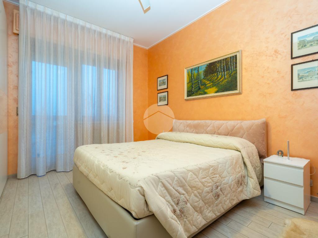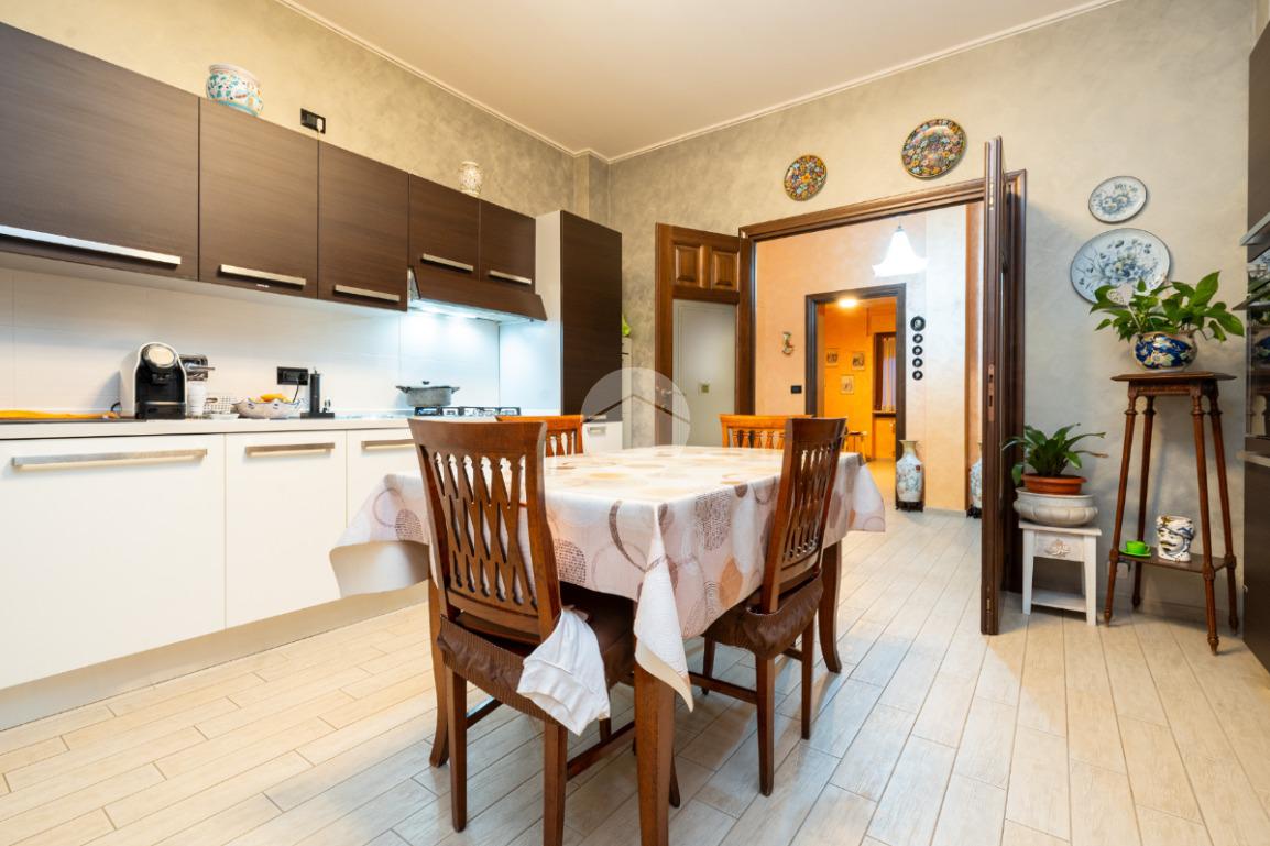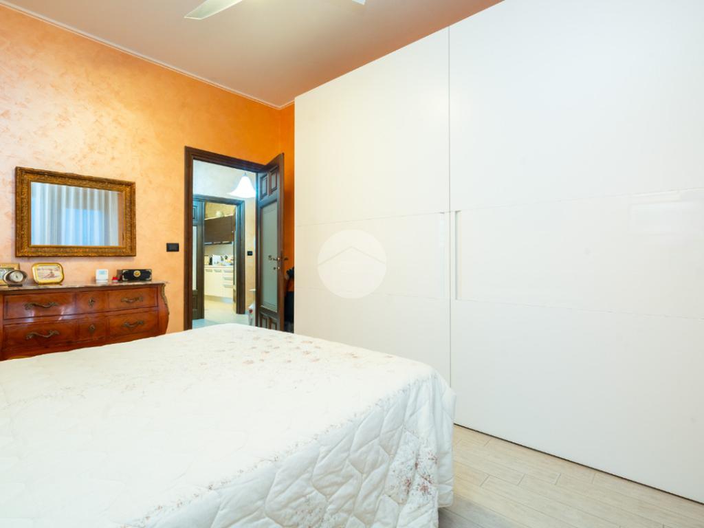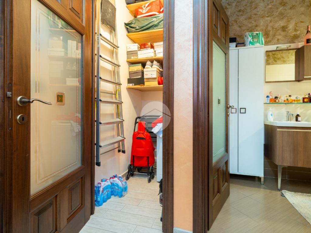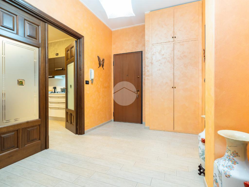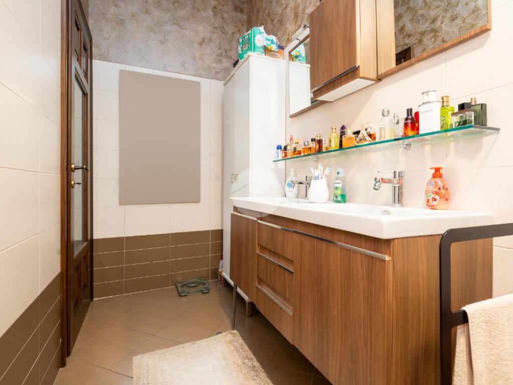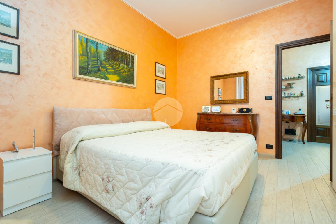 L’alloggio si trova al secondo piano di una palazzina degli anni ’70 che è stato oggetto di lavori di riqualificazione, come ad esempio il cappotto esterno che limita la dispersione di calore. L’immobile si trova nei pressi della stazione e prossimo a tutti i servizi che il paese è in grado di offrire, rimanendo però fuori dalla rotta aerea. Lo stabile è dotato di ascensore. L’appartamento è stato ristrutturato nel 2011 con materiali di pregio. Il portoncino blindato da accesso al disimpegno che collega tutti gli ambienti della casa. La cucina è ampiamente abitabile ed è in grado di ospitare una cucina lineare, un mobile tv ed un tavolo con quattro sedie. Dalla cucina si accede al balcone verandato. La zona notte è invece composta da due ampie camere da letto, una delle quali attualmente adibita a soggiorno/studio. Da entrambe le camere si accede al secondo balcone che affaccia sulla via. Il bagno finemente rivisto è finestrato e completo di box doccia. Completa il piano abitativo un vano ripostiglio/lavanderia. Il riscaldamento è centralizzato ma regolabile con le termovalvole. La cantina al piano interrato è di generose dimensioni. Il box auto singolo completa la proprietà. L’alloggio presenta ambienti luminosi ed ariosi, grazie alla presenza di finestre e porte finestre in ogni stanza.