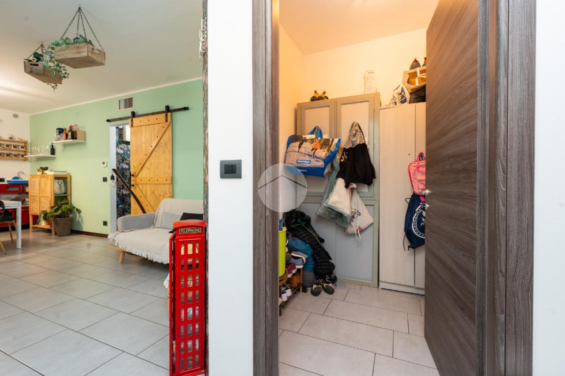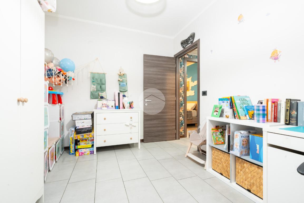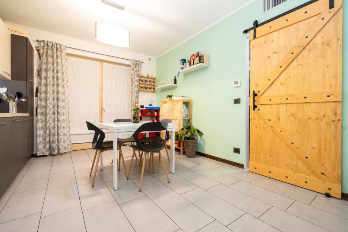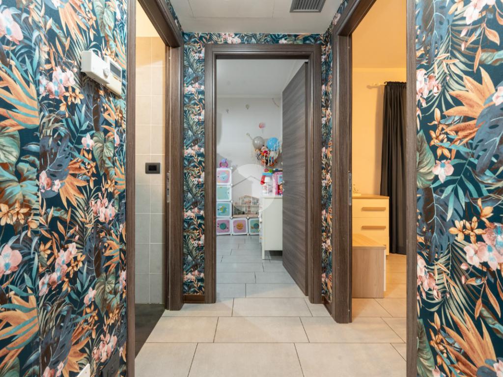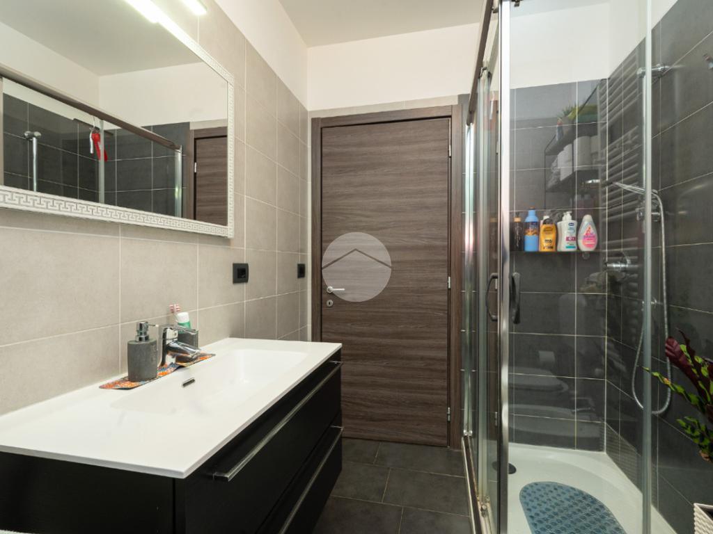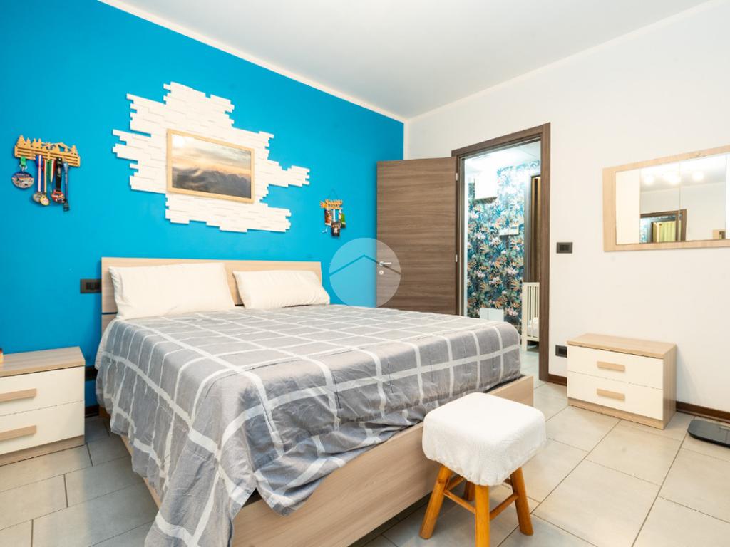 L’alloggio si trova al primo piano di una palazzina di recente costruzione dotata di ascensore e sita in una zona residenziale del paese, lontana dal caos cittadino. Il portoncino blindato da accesso all’ampia zona giorno composta dalla zona relax con divano e parete attrezzata per la tv e dalla cucina lineare ed un tavolo con quattro sedie. Da questo ambiente si accede al terrazzo verandato di generose dimensioni ideale da sfruttare nelle belle giornate di sole. Il disimpegno conduce alla zona notte composta da due camere da letto, di cui un con balcone ampio. Il bagno è finestrato e presenta la doccia. Completa il piano abitativo uno spazioso ripostiglio situato all’ingresso. Il riscaldamento è a pavimento. La cantina ed il box auto singolo completano la proprietà. Questo immobile è ideale per chi cerca un contesto tranquillo, fuori dalla rotta aerea, usufruendo di tutte le potenzialità tipiche delle recenti costruzioni.